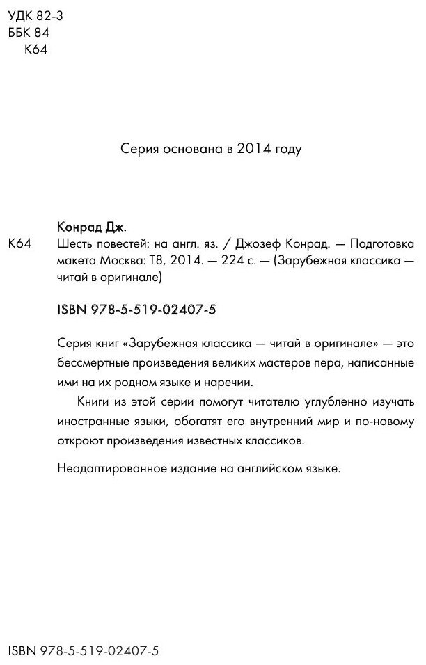 На сегодняшний день товар «Книга: A Set of Six (Джозеф Конрад, Joseph Conrad); Книга по Требованию, 2014» можно купить с кешбеком в 2 магазинах: Буквоед, Читай-город