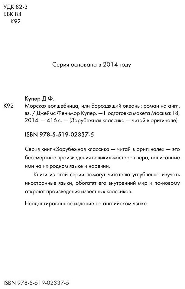 На сегодняшний день товар «Книга: The Water-Witch or The Skimmer of the Seas / Водная ведьма или скиммер морей (James Fenimore Cooper); Книга по Требованию, 2014» можно купить с кешбеком в 3 магазинах: book24, Буквоед, Читай-город