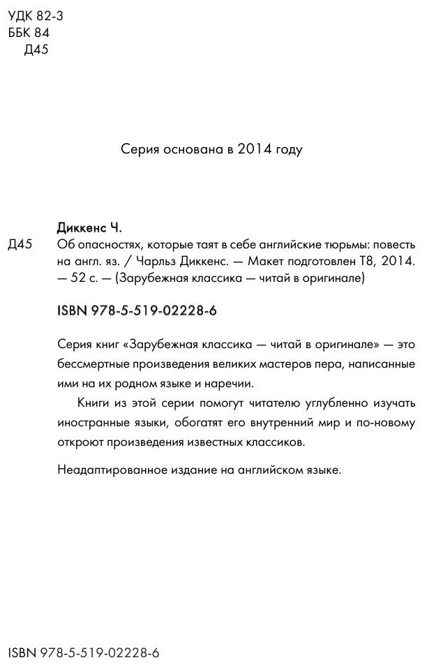 Серия книг «Зарубежная классика — читай в оригинале» — это бессмертные произведения великих мастеров пера, написанные ими на их родном языке и наречии. Книги из этой серии помогут читателю углубленно изучать иностранные языки, обогатят его внутренний мир и по-новому откроют произведения известных классиков.
