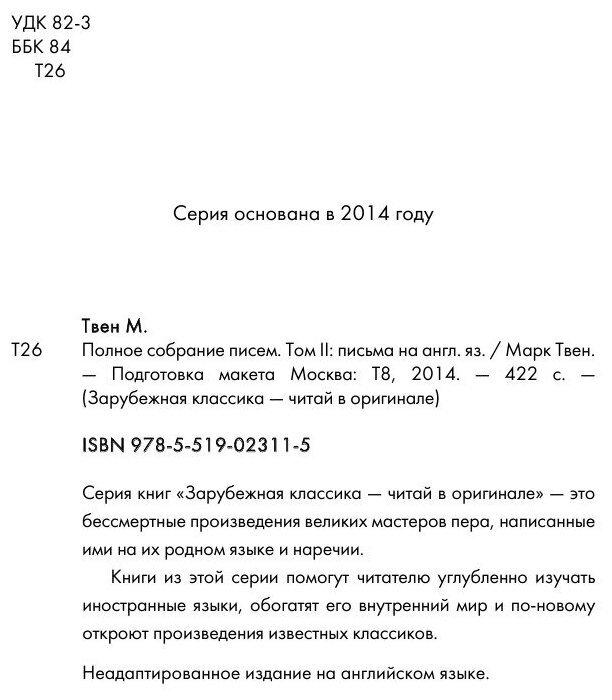 Серия книг «Зарубежная классика — читай в оригинале» — это бессмертные произведения великих мастеров пера, написанные ими на их родном языке и наречии. Книги из этой серии помогут читателю углубленно изучать иностранные языки, обогатят его внутренний мир и по-новому откроют произведения известных классиков.