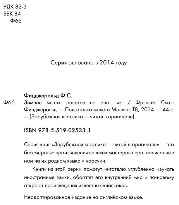 Книга: Winter Dreams (F. Scott Fitzgerald); Книга по Требованию, 2014