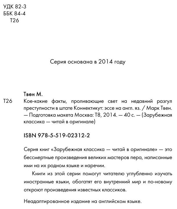 Серия книг «Зарубежная классика — читай в оригинале» — это бессмертные произведения великих мастеров пера, написанные ими на их родном языке и наречии. Книги из этой серии помогут читателю углубленно изучать иностранные языки, обогатят его внутренний мир и по-новому откроют произведения известных классиков.