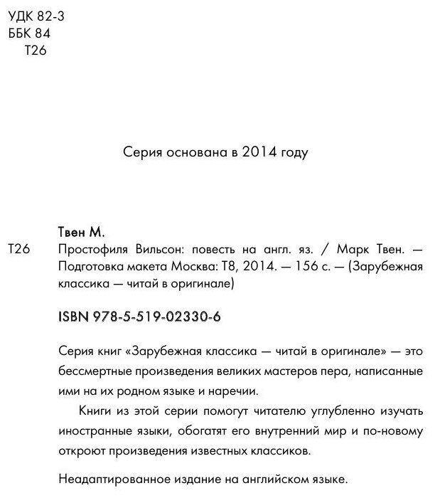 The Tragedy of Pudd'nhead Wilson / Трагедия Пудд'На Уилсона. A Short Story / Короткая история (Twain M.); Книга по Требованию, 2014