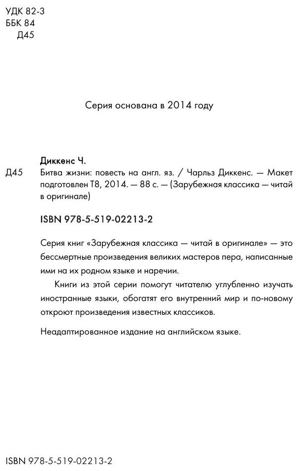 Серия книг «Зарубежная классика — читай в оригинале» — это бессмертные произведения великих мастеров пера, написанные ими на их родном языке и наречии. Книги из этой серии помогут читателю углубленно изучать иностранные языки, обогатят его внутренний мир и по-новому откроют произведения известных классиков.