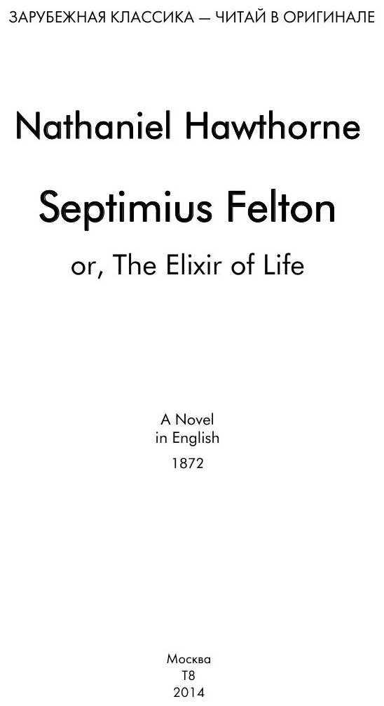Septimius Felton or The Elixir of Life / Септимий Фельтон или эликсир жизни (Nathaniel Hawthorne); Книга по Требованию, 2014