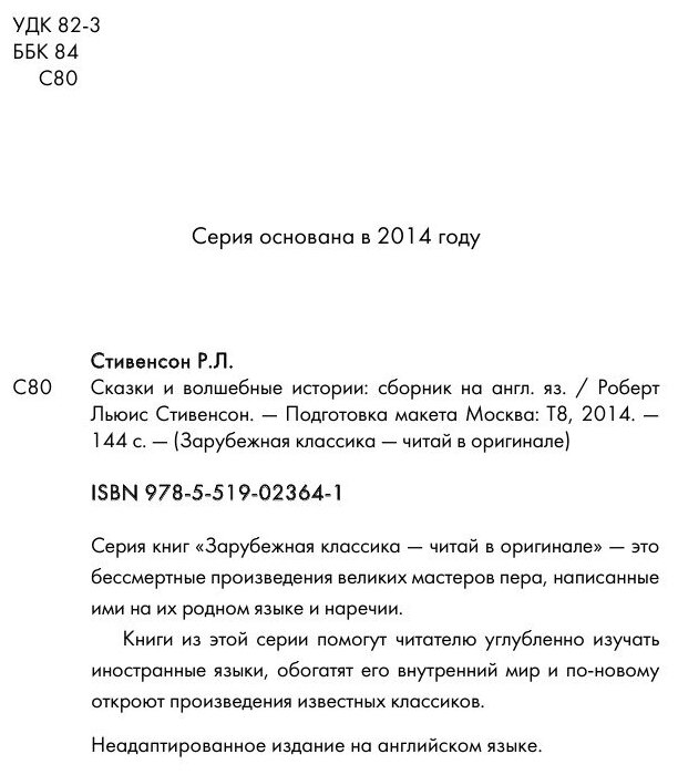 Серия книг «Зарубежная классика — читай в оригинале» — это бессмертные произведения великих мастеров пера, написанные ими на их родном языке и наречии. Книги из этой серии помогут читателю углубленно изучать иностранные языки, обогатят его внутренний мир и по-новому откроют произведения известных классиков.