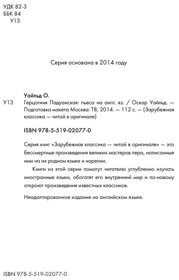На сегодняшний день товар «Книга: The Duchess of Padua (Оскар Уайльд); Книга по Требованию, 2014» можно купить с кешбеком в 3 магазинах: book24, Буквоед, Читай-город