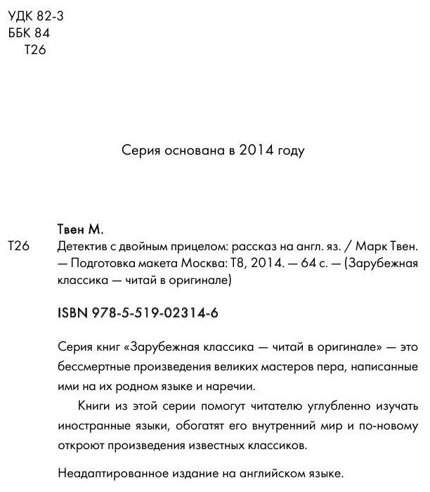 Серия книг «Зарубежная классика — читай в оригинале» — это бессмертные произведения великих мастеров пера, написанные ими на их родном языке и наречии. Книги из этой серии помогут читателю углубленно изучать иностранные языки, обогатят его внутренний мир и по-новому откроют произведения известных классиков.