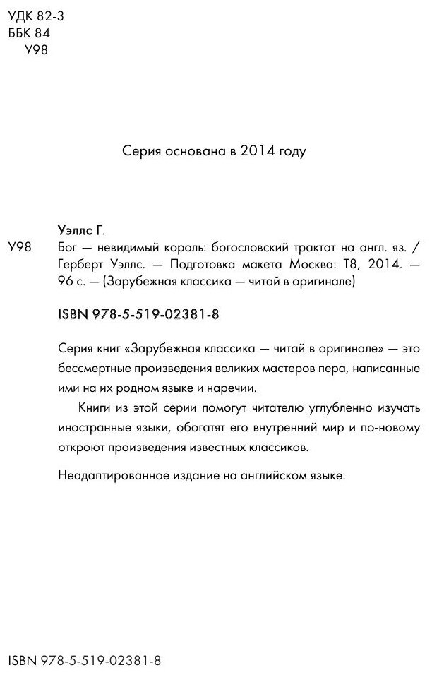 God the Invisible King / Боже невидимый король. Theology / Теология (Герберт Джордж Уэллс); Книга по Требованию, 2014