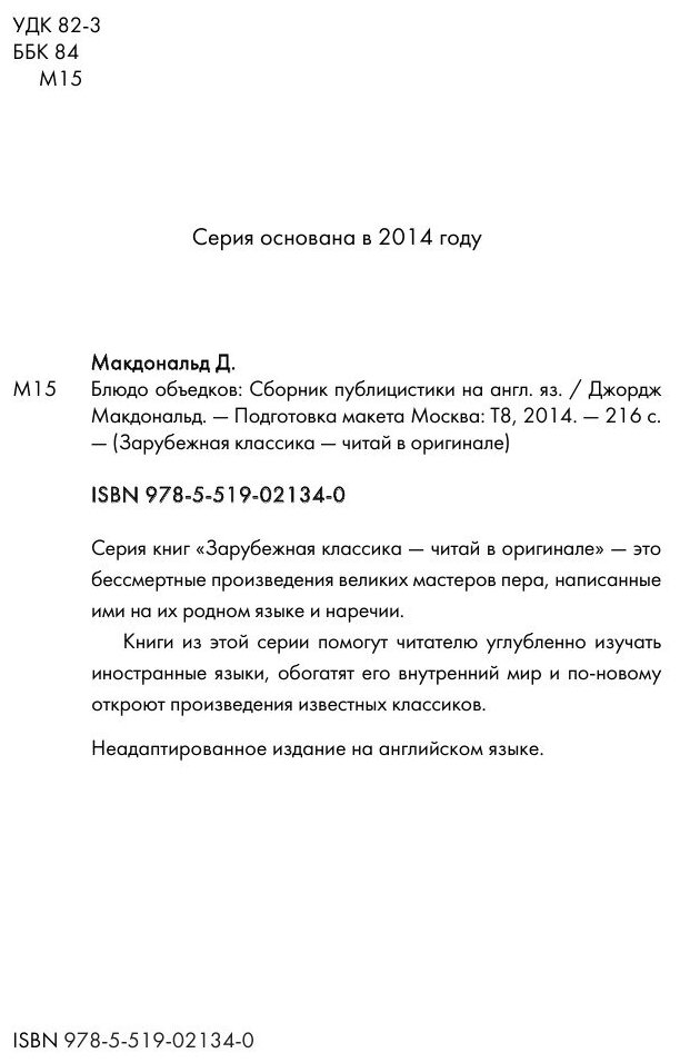 На сегодняшний день товар «Книга: A Dish of Orts / Блюдо Oorts. An Articles / Статьи (George MacDonald); Книга по Требованию, 2014» можно купить с кешбеком в 3 магазинах: book24, Буквоед, Читай-город