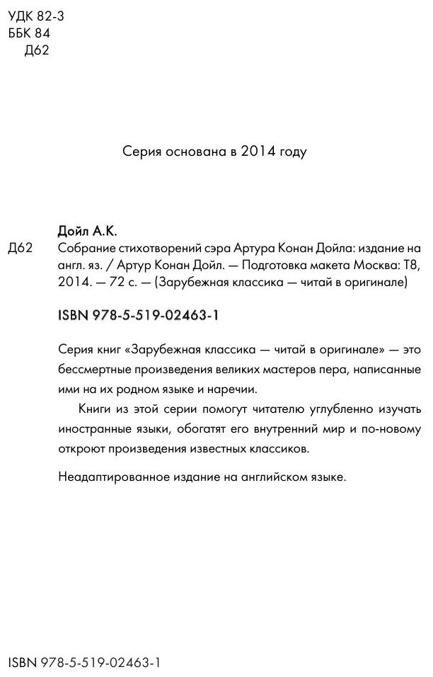 Серия книг «Зарубежная классика — читай в оригинале» — это бессмертные произведения великих мастеров пера, написанные ими на их родном языке и наречии. Книги из этой серии помогут читателю углубленно изучать иностранные языки, обогатят его внутренний мир и по-новому откроют произведения известных классиков.
