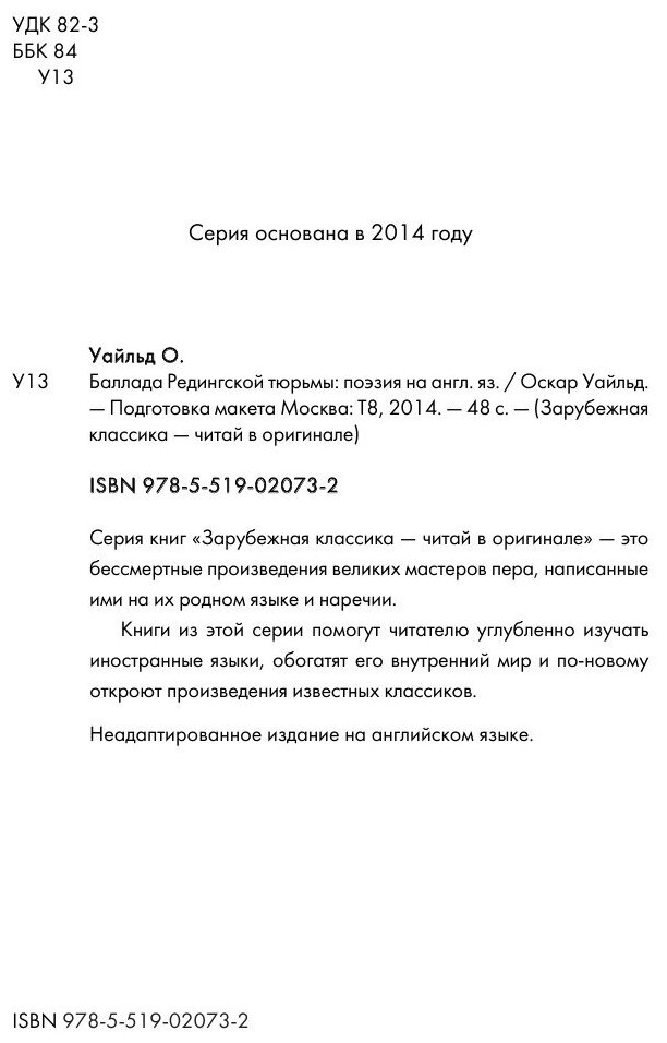 The Ballad of Reading Gaol (Oscar Wilde); Книга по Требованию, 2014