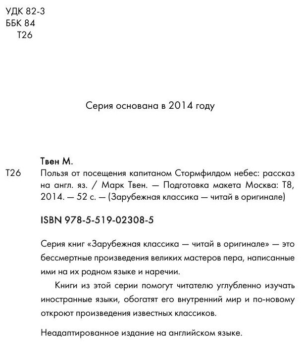 На сегодняшний день товар «Книга: Extract from Captain Stormfields Visit to Heaven (Mark Twain); Книга по Требованию, 2014» можно купить с кешбеком в 3 магазинах: book24, Буквоед, Читай-город