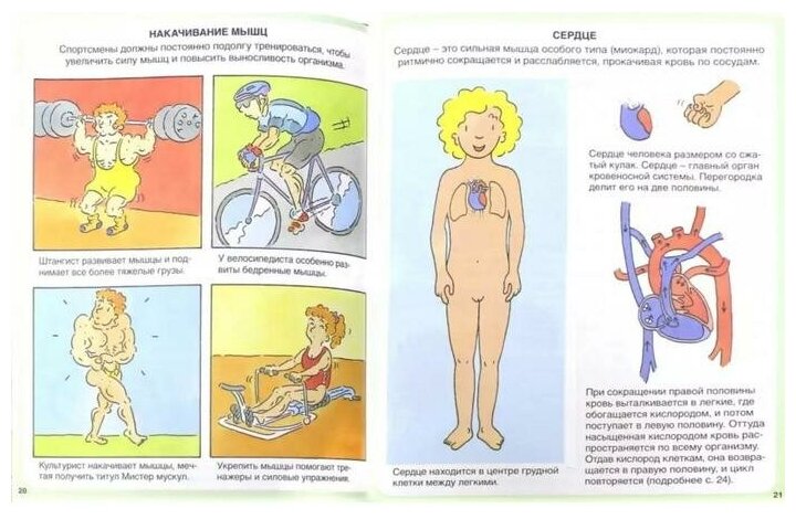 на самом деле энциклопедия неудачная. во-первых, для какого она возраста? рекомендована для "среднего школьного", но для 5 или 7 класса она простовата, рисунки-комиксы совсем для дошкольников, ребята 11 лет уже и так отличают ребра от черепа. во-вторых текст - крайне неподходящий для объяснений, тем более, первичных объяснений. пример текста: Через каппиляры, густо оплетающие альвеолы, кровь в процессе дыхания насыщается кислородом и освобождается от углекислого газа" - с. 31. это статья про легкие. что такое кислород, углекислый газ, альвеолы и каппиляры - больше не упомянется. это дефиниция из плохого учебника для первого курса медуниверситета.
