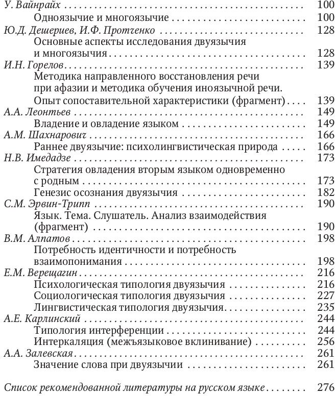 Книга представляет собой путеводитель по проблеме билингвизма. Именно с этой книги я бы посоветовала начинать знакомство с билингвизмом, полилингвизмом, смешением языков. В пособие вошли фрагменты из работ известных ученых, таких как И.А.Бодуэн де Куртенэ, Л.В.Щерба, Л.С.Выготский, Е.Д.Поливанов, Л.Блумфилд, А.Мартине, У.Вайнрайх, А.А.Леонтьев, А.М.Шахнарович, Н.В.Имедадзе, В.М.Алпатов, Е.М.Верещагин, А.Е.Карлинский, А.А.Залевская и др. Книга будет особенно полезна для студентов, которые изучают курсы «Психолингвистика», «Социолингвистика».