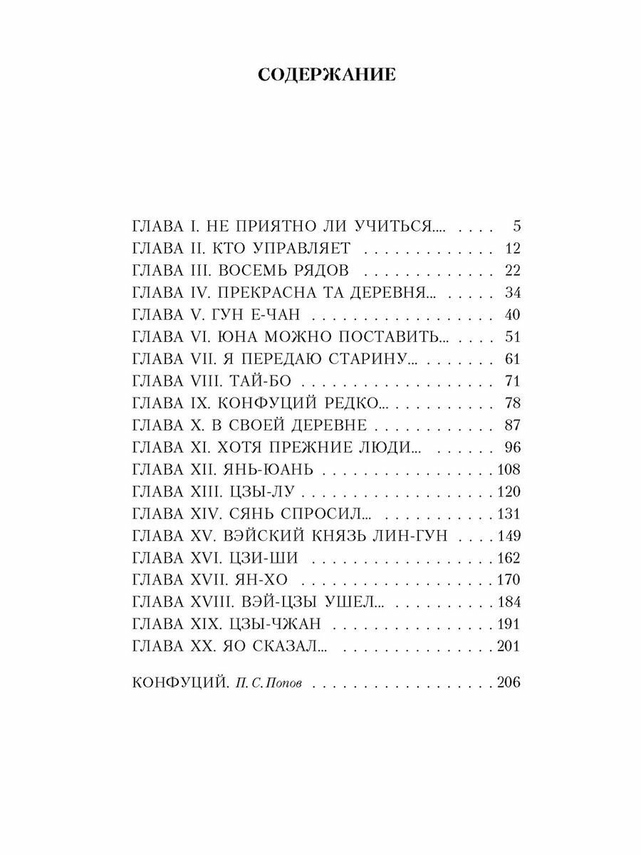 "Суждения и беседы Конфуция" состоит из 20 глав, где в форме бесед представлены основные положения духовно-этического учения, созданного Конфуцием.