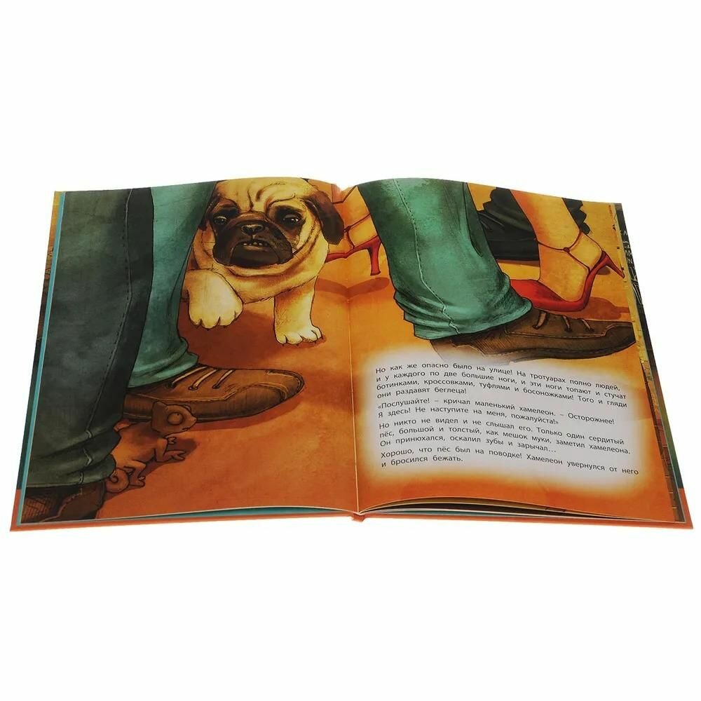 Книжка интересна не только необычной доброй историей, но и чудесными рисунками. На каждом развороте малышам и их родителям придется потрудиться, чтобы отыскать хамелеона – ведь он меняет окраску в зависимости от окружающей среды. Приятное развлечение на целый вечер вам обеспечено!