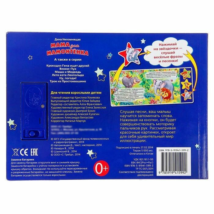 Мама для мамонтёнка. (3 музыкальные кнопки).формат: 206х150мм. объем: 6 стр. (Дина Непомнящая); Умка, 2015