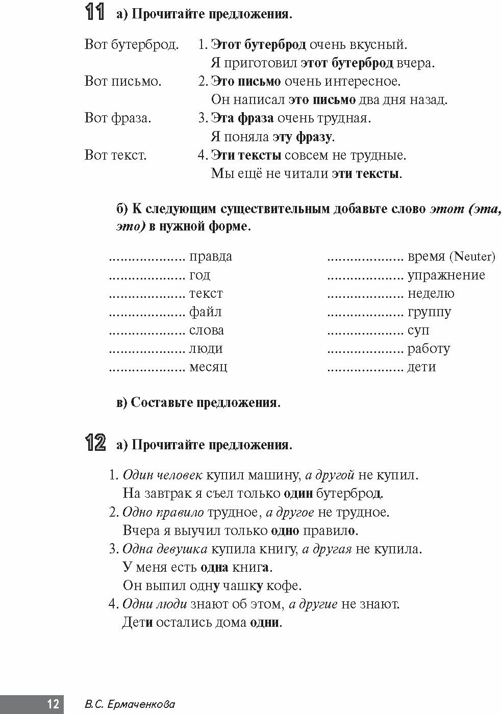 Книга действительно прекрасно подходит для повторения и закрепления падежей и предлогов. Большим ее достоинством считаю то, что пособие во многом построено по принципу рабочей тетради, т.е. упражнения можно делать прямо в книге. Это значительно экономит время и делает работу не такой монотонной (не нужно переписывать все упражнение целиком, нужно писать лишь ту грамматику, что повторяется). Другим достоинством книги является наличие грамматических таблиц по каждому падежу с переводом ключевых слов (падежных вопросов и базовых грамматических терминов) на русский язык, кроме того, приводятся списки глаголов, управляющих тем или иным падежом. В конце книги есть ответы и грамматическое приложение.