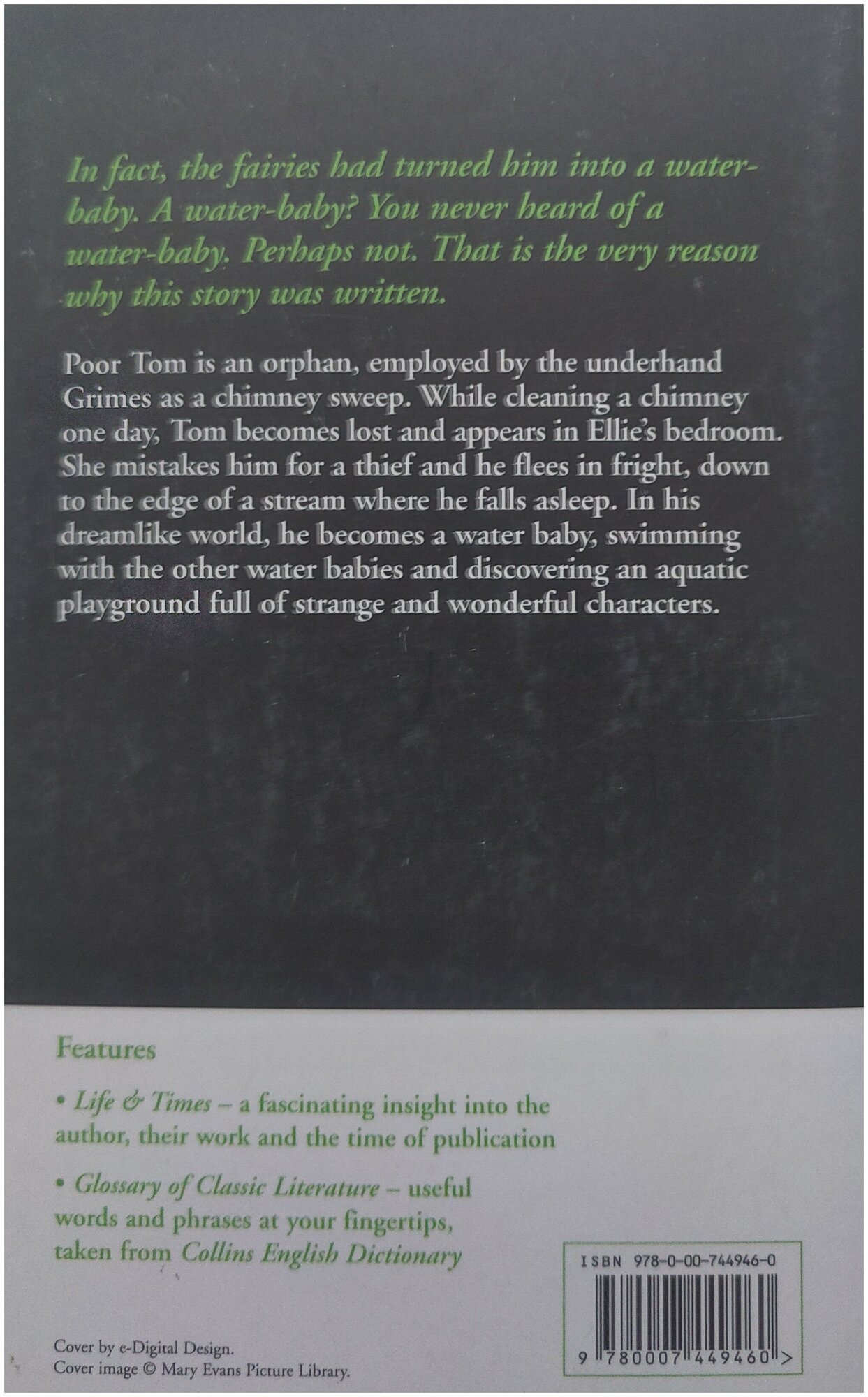 HarperCollins is proud to present its new range of best-loved, essential classics. 'In fact, the fairies had turned him into a water-baby. A water-baby? You never heard of a water-baby. Perhaps not. That is the very reason why this story was written.' Poor Tom is an orphan, employed by the underhand Grimes as a chimney sweep. While cleaning a chimney one day, Tom becomes lost and appears in Ellie's bedroom. She mistakes him for a thief and he flees in fright, down to the edge of a stream where he falls asleep. In his dreamlike world, he becomes a water baby, swimming with the other water babies and discovering an aquatic playground full of strange and wonderful characters.