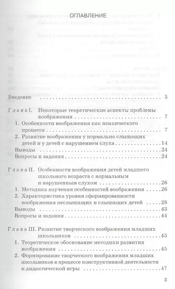 В работе рассматриваются особенности творческого воображения детей младшего школьного возраста с нормальным и нарушенным слухом. Пособие предназначено для студентов педагогических университетов, педагогов, психологов, практических работников. Представлена апробированная на практике система педагогических средств и методов развития творческого воображения и обучения общим принципам решения творческих задач в условиях предметно-практической и игровой деятельности в младшем школьном и дошкольном возрасте.