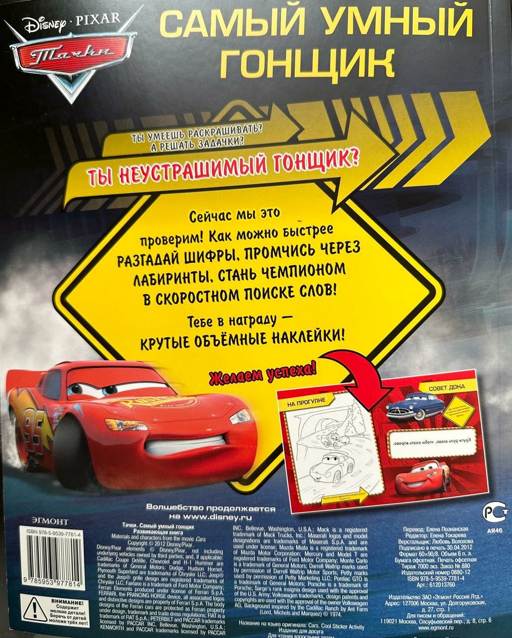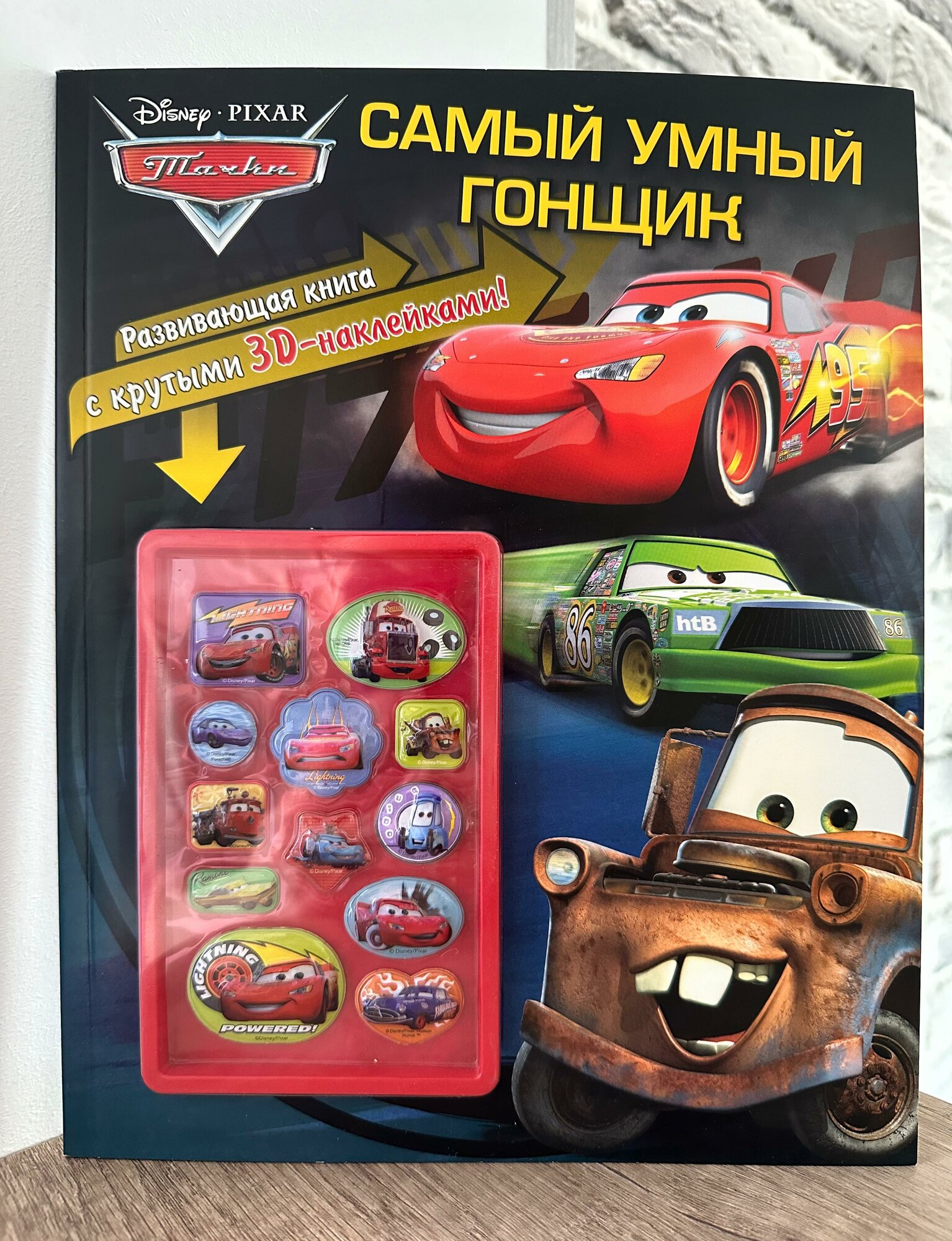 Тачки. Самый умный гонщик. Развивающая книга с крутыми 3D-наклейками! Для чтения взрослыми детям