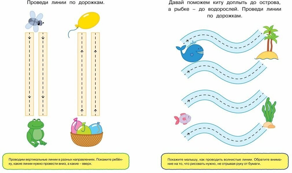 Книжка-пропись: нужно по пунктирной линии провести карандашом. В принципе можно легко сделать самой такие задания для ребенка. Книжка тонкая, бумага тонкая, картинки средней яркости, не перегружены. На год точно рановато, скорее рассчтано на двухлетнего малыша, а еслиВы хотите, чтоб ребенок выполнял задания сам, то и еще постарше немного. Нам год и девять, даю ребенку карандаш, беру ее руку в свою и рисую. А если дать волю и отпустить руку, то просто рисует каку-маляку, задание не воспринимает. Правда это наш первый опыт с такими прописями. Хотя детки, конечно, все разные))-
