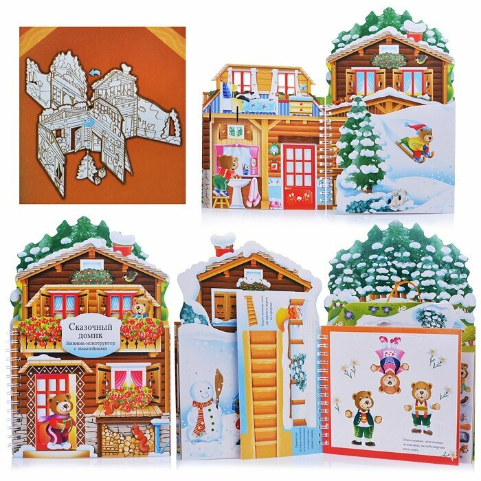 Яркая книжка-конструктор «Сказочный домик» обязательно понравится вашему малышу и станет отличным подарком. С ее помощью ребенок сможет не только построить уютный домик для забавных медвежат, но и почувствовать себя настоящим дизайнером: расставить мебель и украсить интерьер с помощью многоразовых наклеек. Сказочный домик с елкой и очаровательными персонажами не оставит равнодушными вас и вашего малыша.