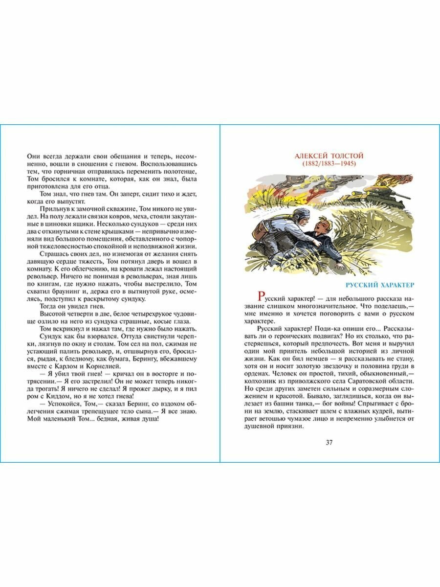 На мой взгляд, это очень хороший сборник произведений отечественных и зарубежных классиков. Рассказы небольшие, сопровождаются отличными иллюстрациями художников Соколова и Черноглазова. Сборник купила для дочери, но и сама прочла с большим удовольствием. В рассказах авторы затрагивают разные темы. В "Русском характере" воспевается любовь к родному дому, отцу и матери; смелость и отвага в рассказе О\'Генри; уважение и справедливость в "Сказании о Кише". Всего в книге 10 произведений. Рекомендую к прочтению и детям, и взрослым.