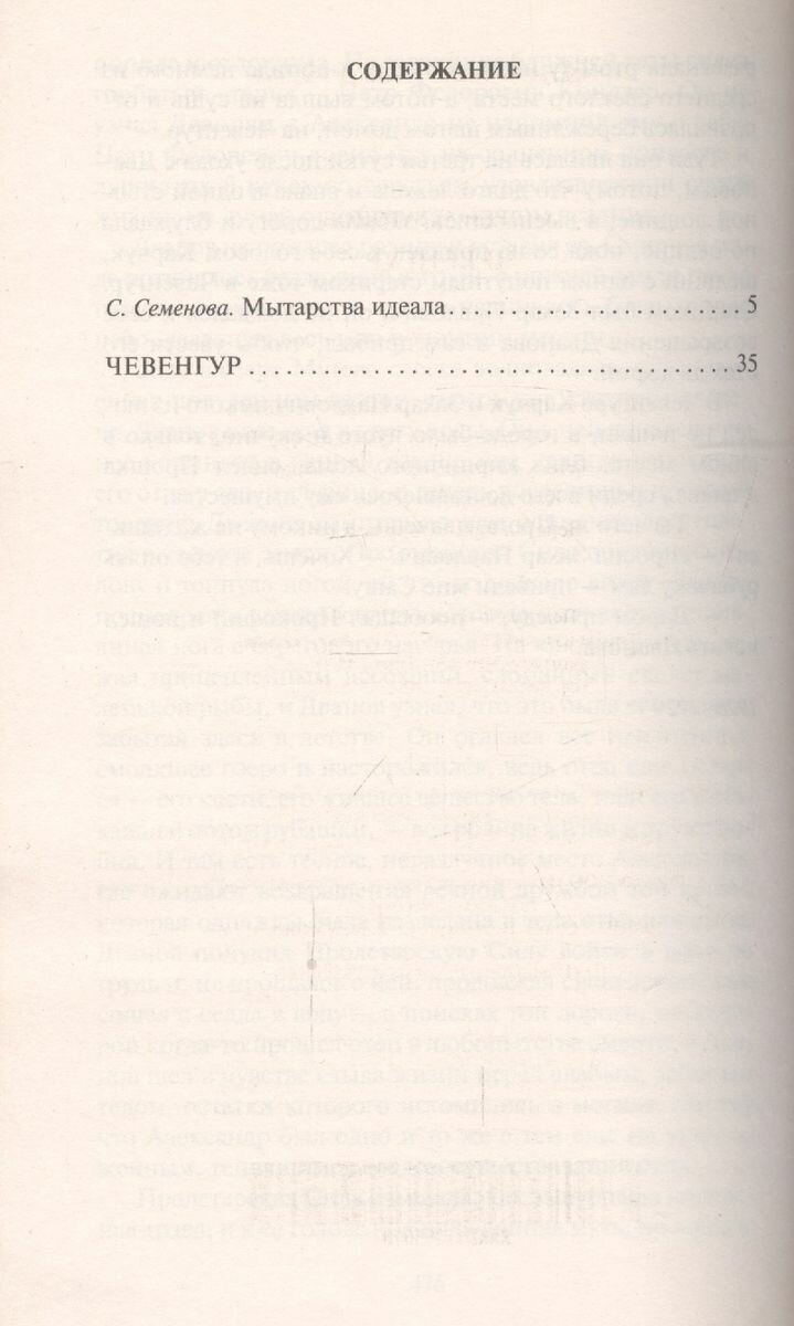 Достаточно сложная книга. Сумбурность действий и авторский язык заставляют перечитывать некоторые фрагменты по несколько раз. Что же касается содержания, то тут все намного лучше; затрагиваемые Платоновым темы социального равенства и поиска смысла жизни заставляют возвращаться к книге, а не бросить ее на полпути( из-за ранее упомянутых проблем с авторским стилем). После себя книга оставляет некую пустоту внутри читателя. Герои, события, идеалы жителей Чевенгура - все это заставляет задуматься над своей жизнью и своими ценностями. Рекомендую эту книгу тем людям, которые ищут ответы на вопросы бытия, а не гонятся за красотой слова и остротой сюжета.