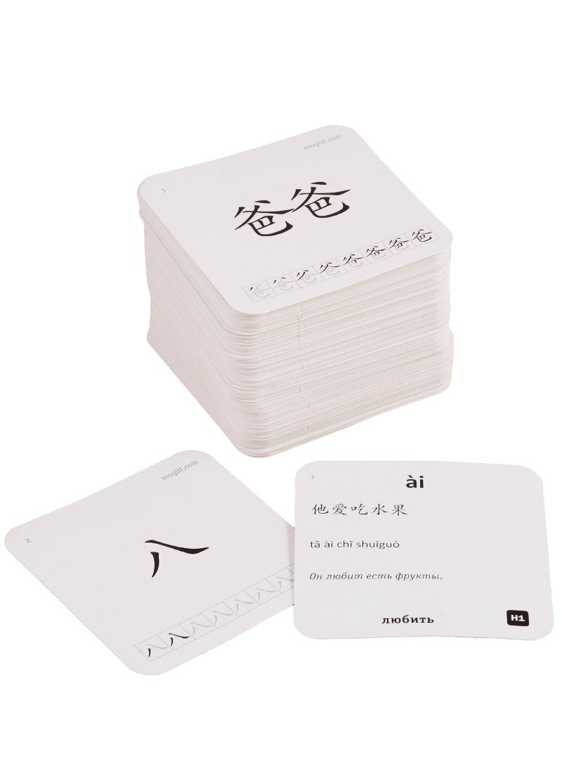 Набор карточек содержит 150 иероглифов, соответствующих первому уровню HSK.