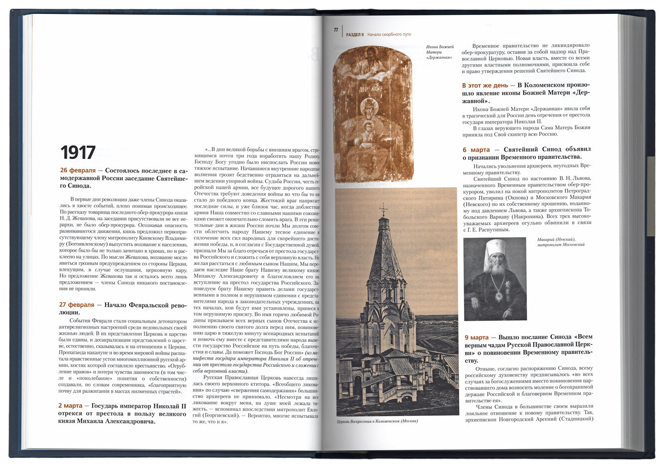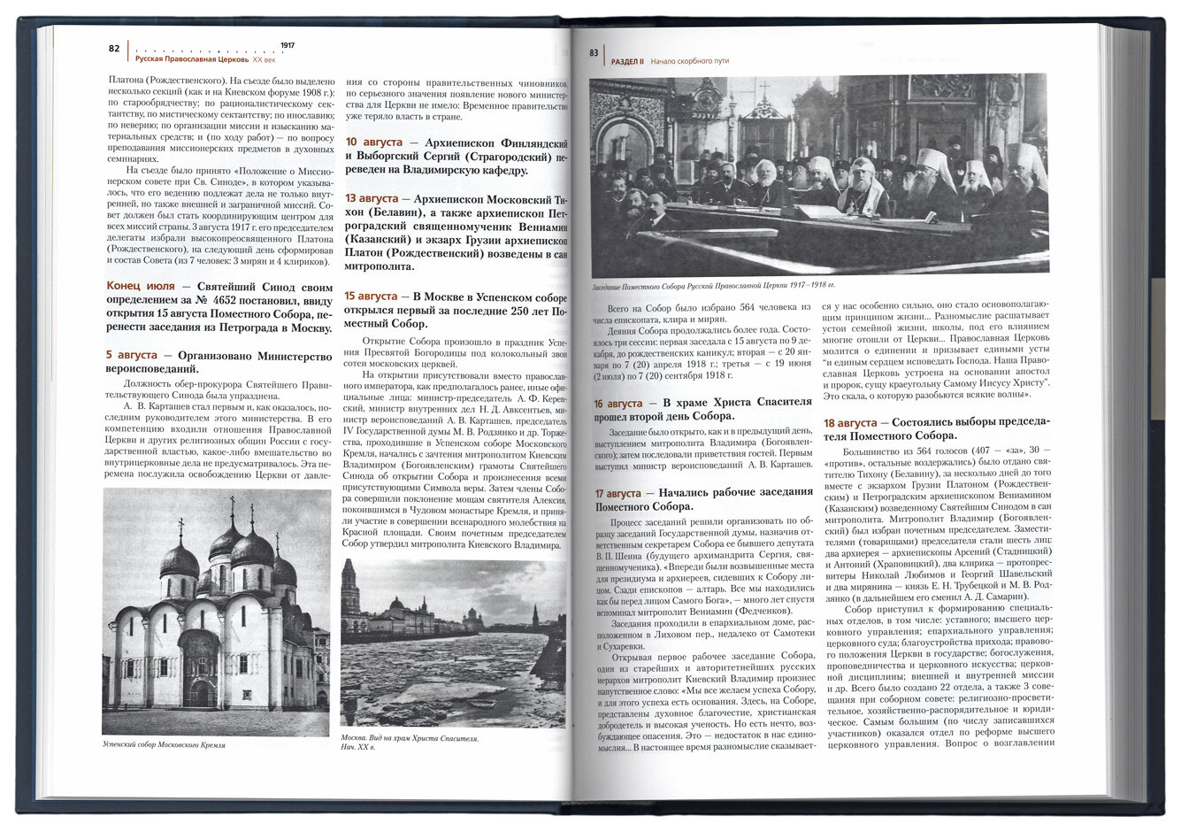 Роскошное издание огромного размера! Книга великолепно оформлена, богато иллюстрирована, содержит массу фотографий и невероятный объём информации. В книге изложены почти ежедневные события в жизни Русской Православной Церкви. Получилась хронологическая энциклопедия Церкви с энциклопедически точной подачей информации. Книга станет великолепным подарком!