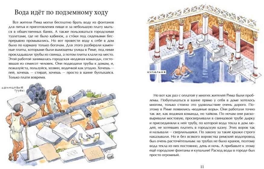 Откуда вода попадает в наши дома? Как устроен водопровод? Когда он был изобретён, как менялся в течение веков и что представляет собой сегодня? Колодцы и акведуки, водонапорные башни и насосы, водозабор и поля фильтрации - как много всего сложного и интересного придумали люди, чтобы мы могли получить воду, просто открыв кран.