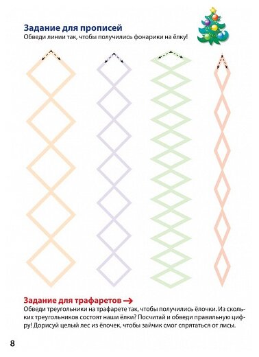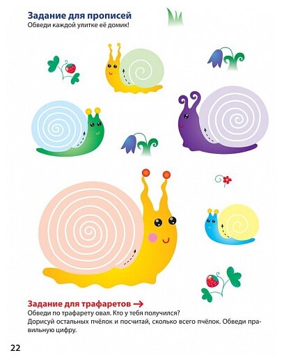 "Первые прописи с трафаретами для малышей. Активные игровые задания для детей от 3 лет" серии "Разумники" – уникальное игровое развивающее пособие, где впервые использована технология, когда суперобложка приобретает новые функции: одновременно соединяет два типа активных заданий – многоразовые прописи + развивающие трафареты. Выполняя интересные задания с трафаретами, ваш ребёнок выучит формы, цифры и научится считать, а многоразовые прописи помогут ему научиться рисовать основные типы линий: прямые, наклонные, зигзаги, волны и другие. Прописи с трафаретами разработаны специально для родителей и воспитателей, занимающихся развитием детей от 3 лет. Работа с трафаретами также направлена на развитие творческого мышления и воображения: раскрашивая и дорисовывая формы, ребёнок каждый раз будет находить в них разные образы и выполнять интересные задания. Многоразовые прописи с трафаретами помогут вашему ребёнку развить мелкую моторику и укрепить мышцы пальчиков, подготовят его руку к письму, приучат правильно держать карандаш, разовьют аккуратность и усидчивость. Интересные и разнообразные задания сделают обучение вашего ребёнка интересным и увлекательным!