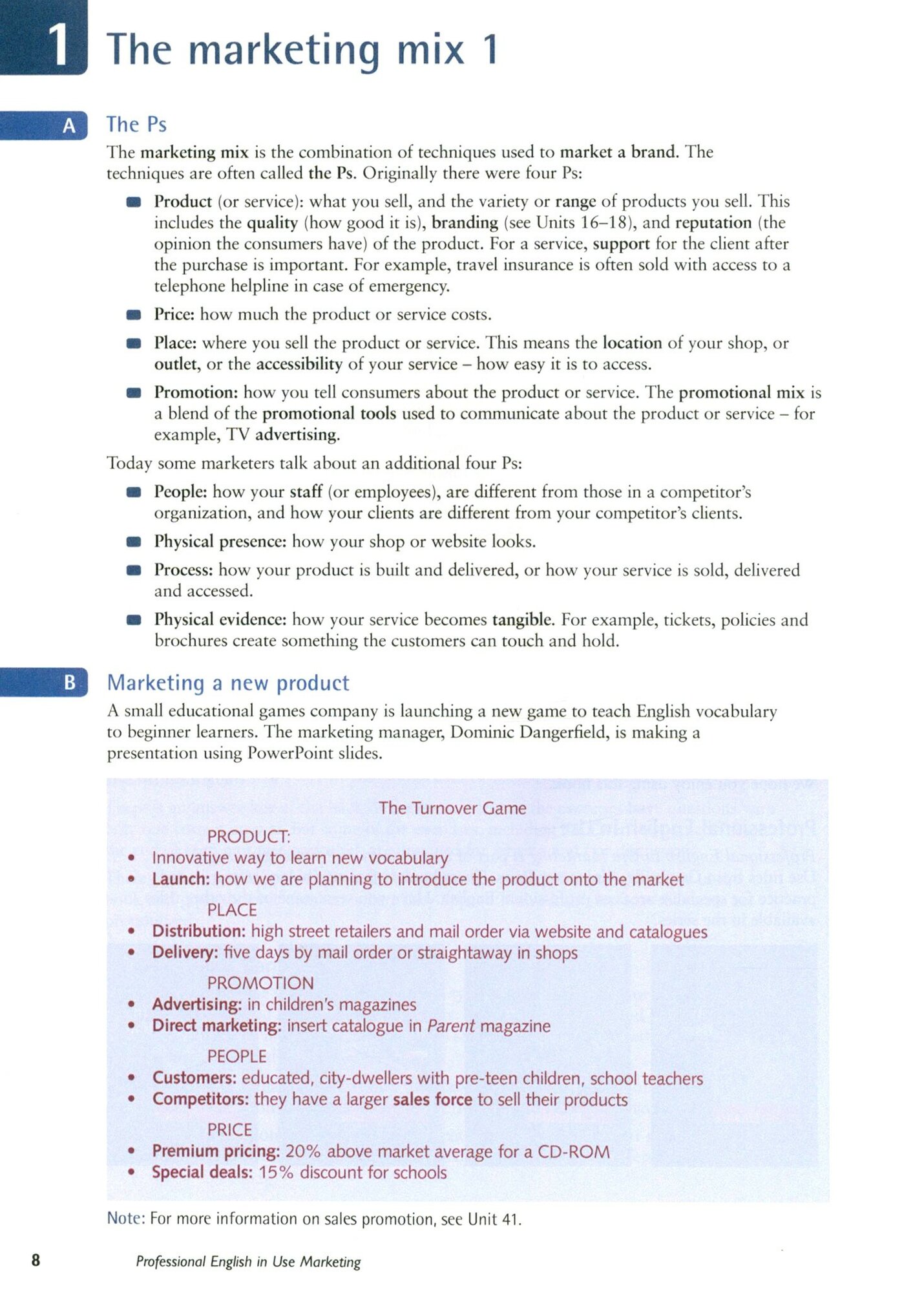 Professional English in Use Marketing contains 50 units covering a wide variety of marketing vocabulary. Topics include marketing basics, the full ‘marketing mix', research, PR, and marketing communications. Primarily designed as a self-study reference and practice book, it can also be used for classroom work and one-to-one lessons, and is suitable for intermediate and upper intermediate students. Professional English in Use Marketing draws on authentic texts and real companies to present the most up-to-date and comprehensive language and terminology. It is a must for students of marketing or business, and for marketing professionals who need to use English at work. Presents and explains vocabulary items in context on the left-hand pages with a range of practice activities on the right-hand pages. Features ‘Over to you’ activities which enable learners to apply the language they have learnt to their own studies and working lives. Includes a comprehensive, learner-friendly answer key and index.