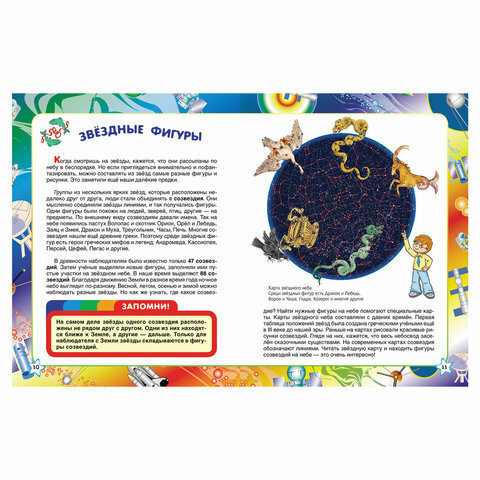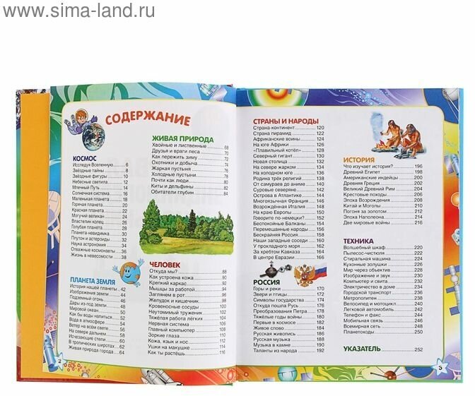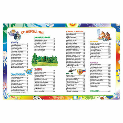 Книга в увлекательной и наглядной форме знакомит ребенка с окружающим миром. Он узнает о тайнах звездного неба, живой природы и человеческого тела, происхождении и особенностях планеты Земля, географическом положении, истории, обычаях и достопримечательностях различных стран мира, особенно России, а также познакомится со всевозможной техникой. Благодаря замечательным иллюстрациям и множеству интересных фактов эта энциклопедия станет незаменимой настольной книгой для вашего ребенка.