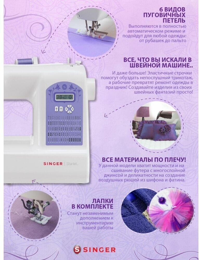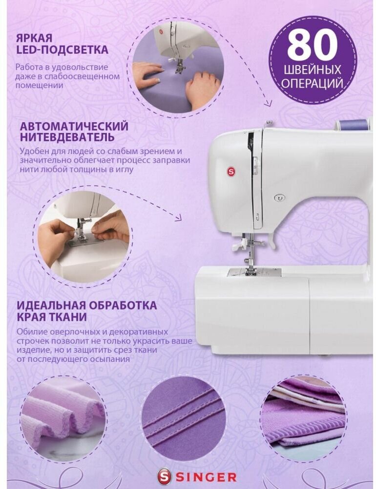 Швейная машина Singer белый, электромеханическая, челнок ротационный вертикальный, автоматическое выполнение петель ()