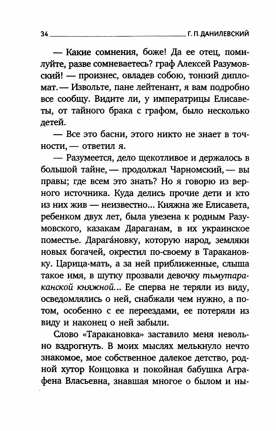 Роман "Княжна Тараканова" Данилевского Г.П. довольно интересен, рассказывает об авантюристке, которая выдает себя за дочь российской императрицы. Думаю, будет интересен всем, кто любит читать исторические романы. Сюжет построен просто, но притягивает с первых страниц книги, затягивает тебя постепенно.