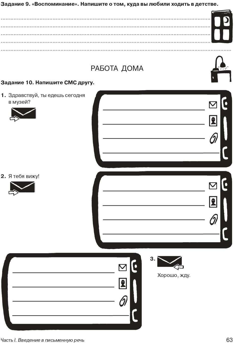 С учётом элементарного уровня, в издании уделяется внимание развитию таких умений, как написание СМС, записок, писем (т. е., так называемому эпистолярному жанру), построение рассуждений, повествований, описаний. Перспектива данного издания предусматривает развитие умений, требующихся на основном и продвинутом этапах изучения русского языка как иностранного.