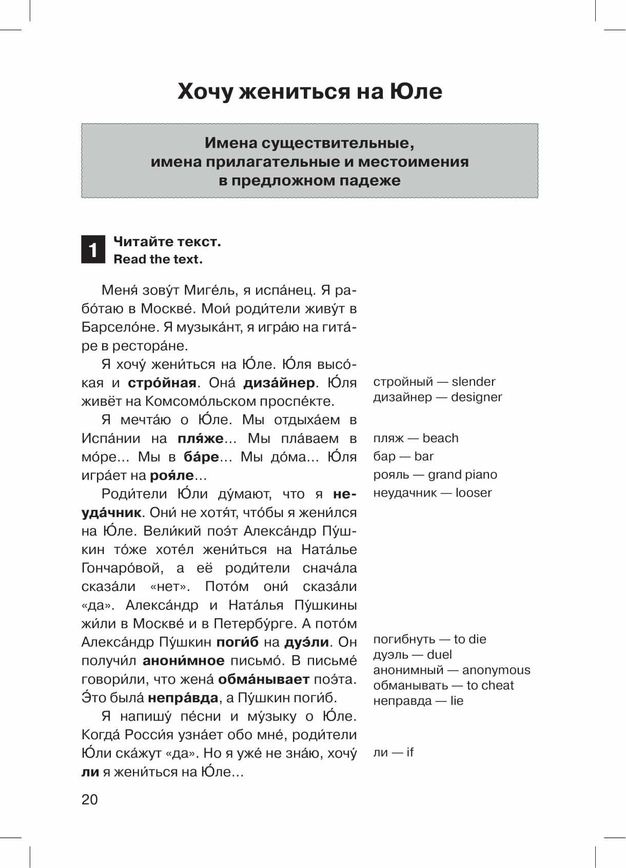 Стоит приобрести.Очень интересные рассказы, короткие и доступные для понимания, из современной жизни. Над каждым словом стоит ударение. Трудные или незнакомые слова помещены справа от основного текста с переводом на английский язык. После каждого рассказа даются задания – устные и письменные. Письменные задания можно выполнить прямо в книге, так как в задании есть строчка, на которой студент может написать ответ, а учитель проверить и исправить. То есть это как книга-тетрадь, что очень удобно и практично. Книга разбита на грамматические разделы. Это все падежи и глаголы движения. В конце книги есть ключи. Также в книге есть современные фотографии и рисунки, что делает её ещё более привлекательной и живой. Рекомендую для всех студентов уровня А1-А2, а также их преподавателей.
