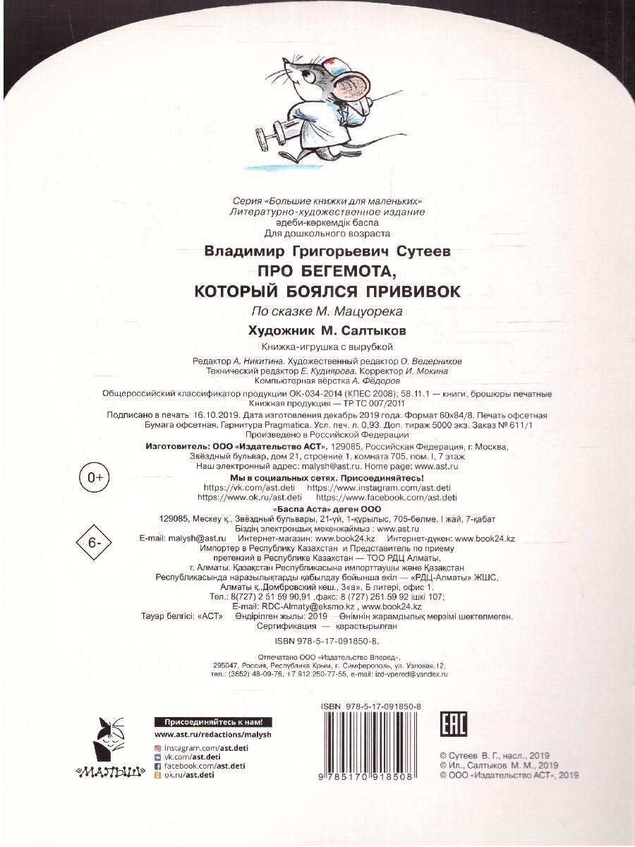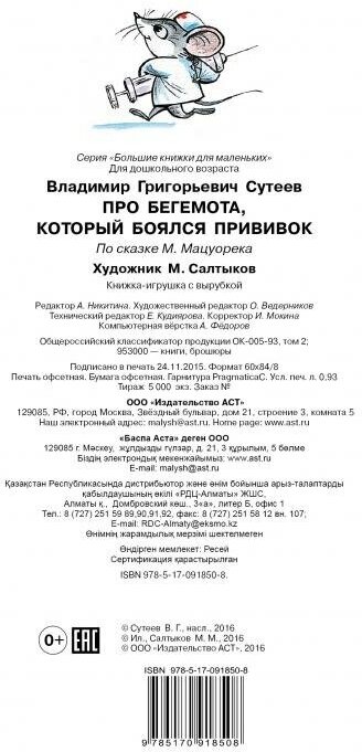 БолКнижкиД/Маленьких Сутеев Про бегемота который боялся прививок (Сутеев Владимир Григорьевич); ИЗДАТЕЛЬСТВО "АСТ", 2016