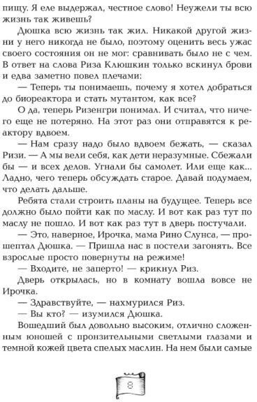 Я поняла проблему автора: у него в голове все расставлено по полочкам и в итоговом варианте выходит интереснейший продукт, но вот на бумагу вылить этот продукт у него ну никак не получается. главы нудные, скучные, сюжет ползет как черепаха. и это очень жаль. мне искренне интересно чем все закончится. мне интересно наблюдать за Дюшкой и Ризом. выкиньте всю воду, которую намешал автор (особенно эту бесящую Варю!!!!) и оставьте лишь этих двух персонажей. мне не интересно читать третью книгу подряд про то, как ангел-эксперт Старк возится с дурацкими черепашками, пытаясь понять от чего они исчезли, мне не интересно про то, что там творится на дебильном острове. правда. мне интересно почитать про то, как Дюшка переживает за друга, как пытается ему помочь. но, к большому моему сожалению этого очень мало в книге. все занимают миллион бесящих персонажей, которые вообще ненужны.