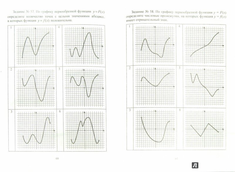 Пособие подходит для подготовки к заданию 8 ЕГЭ профильного уровня и к заданию 7 ЕГЭ базового уровня – «Функции, заданные графиками и их производные». К каждому заданию прилагается по 6 чертежей, что обеспечивает плотную отработку заданий для закрепления изученного. Кроме того, присутствуют задания, связанные с первообразными и интегралами.