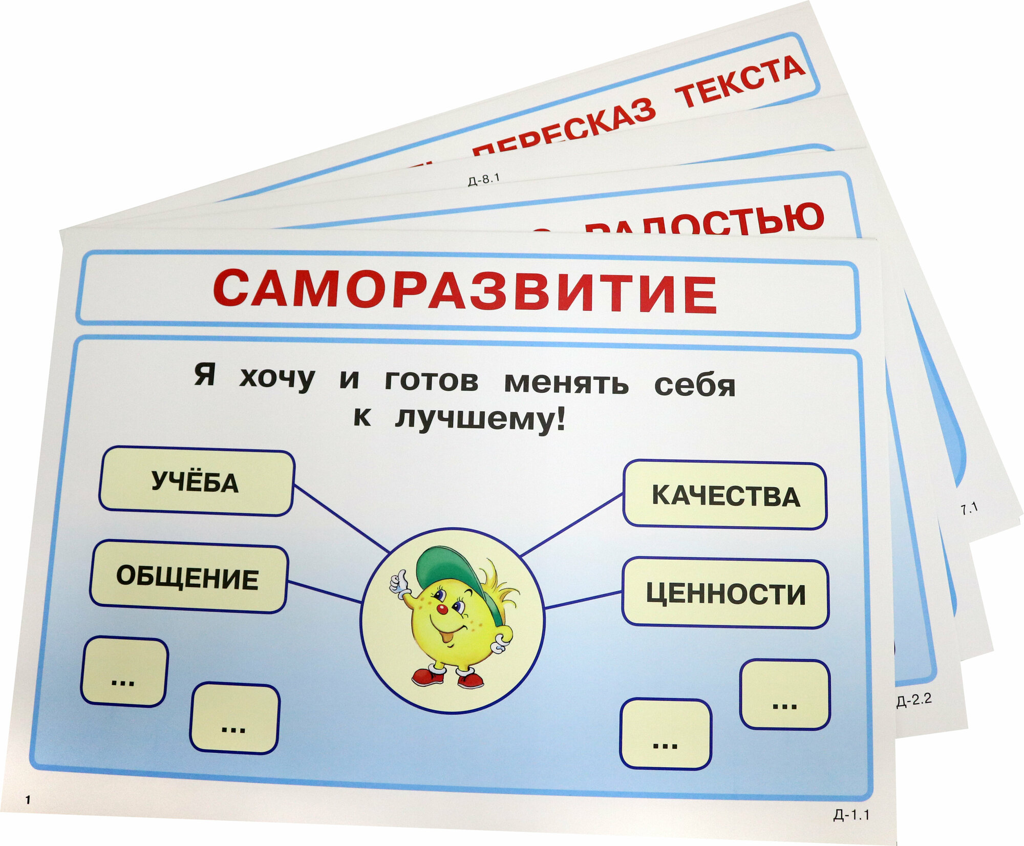 Демонстрационный материал предназначен для проведения уроков по надпредметному курсу «Мир деятельности» для учащихся 4-го класса в рамках открытой образовательной системы деятельностного метода Л.Г. Петерсон («Школа 2000...»). Соответствует вариантам сценариев уроков к данному курсу, представленных в методических рекомендациях для учителей. В пособие входят демонстрационные эталоны (опорные сигналы) к каждому уроку и материал, необходимый для организации учебной деятельности учащихся по освоению универсальных учебных действий и умения учиться. Чтобы придать формированию результатов ФГОС системный характер, демонстрационный материл рекомендуется использовать как на уроках данного курса, так и на других уроках по разным учебным предметам. Система работы с демонстрационным материалом подробно описана в методических рекомендациях для учителей. В нумерации демонстрационного материала первая цифра показывает номер урока, а вторая цифра или буква соответствует нумерации внутри урока. Например, Д – 3.2б обозначает демонстрационный (Д) материал к уроку 3, номер 2б.