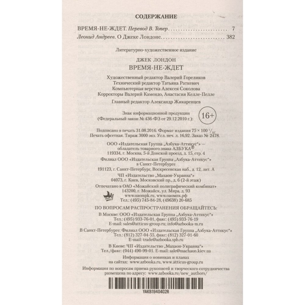 Книга: Время-не-ждет (Лондон Джек); Азбука, 2021