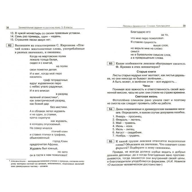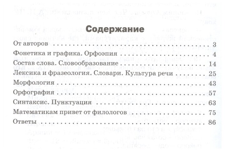 Есть задания, кочующие из книжки в книжку, из пособия в пособие, но много свежих. Авторы затрагивают все разделы русского языка. Особенно мне импонировал раздел "Математикам привет от филологов" - "интеграционные" задания, в которых нужно вспомнить и точные науки. Учителям настоятельно рекомендую. По одному-два заданию на уроке - глядишь, и интерес пробудится.