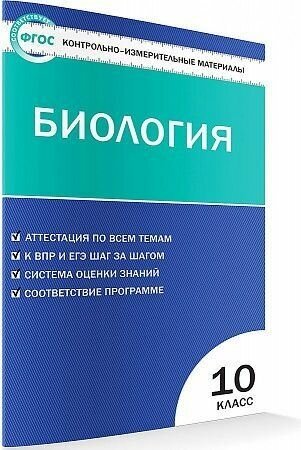 В пособии представлены контрольно-измерительные материалы (КИМы) по биологии для 10 класса. Издание составлено в соответствии с требованиями ФГОС. Структура КИМов аналогична структуре заданий ЕГЭ, что позволит постепенно подготовить учащихся к работе с подобным материалом. В конце издания предложены ключи к тестам. Пособие адресовано учителям, учащимся старших классов и их родителям.