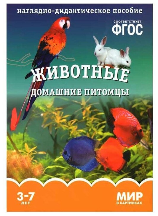 Наглядно-дидактическое пособие «Животные домашние питомцы» серии «Мир в картинках», предназначенное для групповых и индивидуальных занятий с детьми 3–7 лет в детском саду и дома, познакомит детей с кошкой, собакой, морской свинкой и другими животными домашними питомцами.