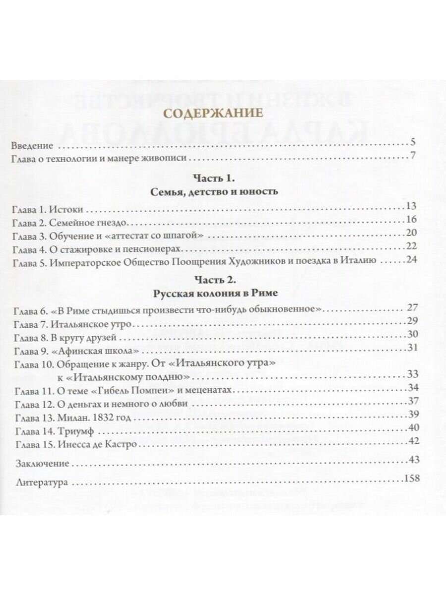 Книга неплохая, хорошо представлены биография и анализ работ Карла Брюллова. Многие художники получали новые и подробные знания об искусстве в Италии, которую по праву можно признать точкой развития живописи и других видов искусства. Единственный недостаток - достаточно приличное количество ошибок и опечатков в тексте и названиях картин, например Вирсавия, 1932 (а не 1832)