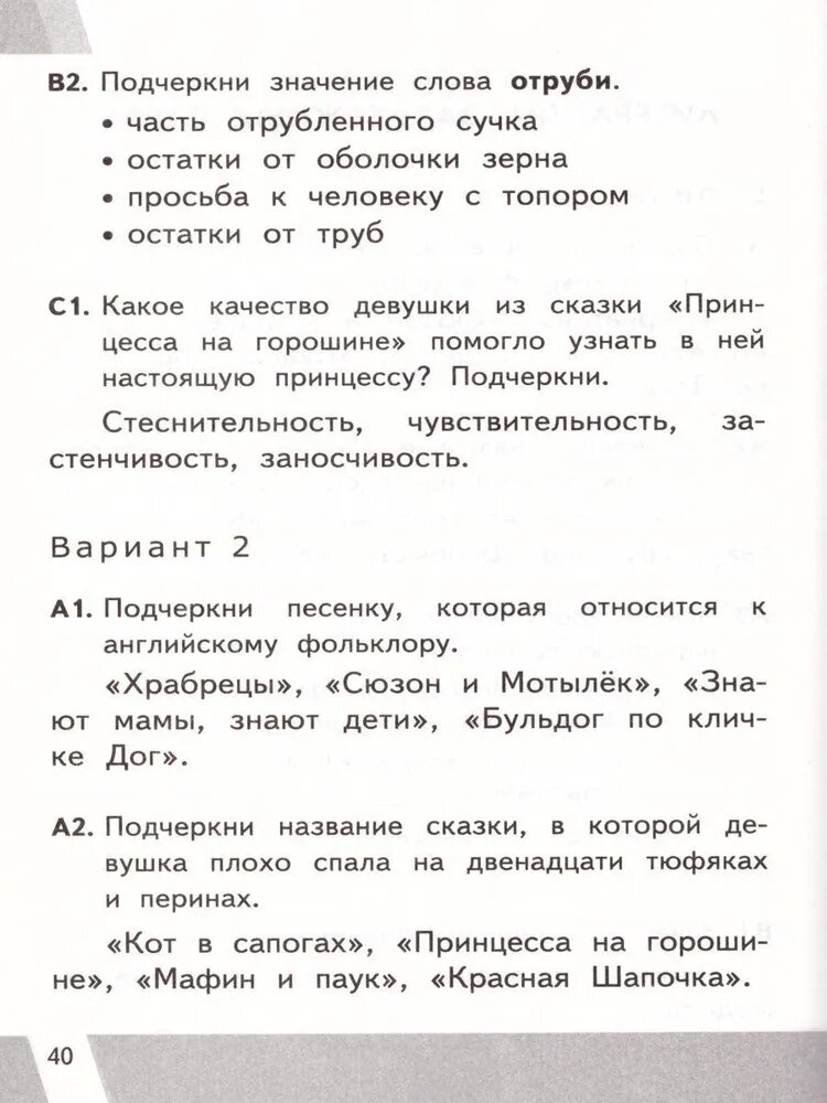 Всероссийская проверочная работа 2 класс. Литературное чтение. (Шубина Галина Викторовна); Экзамен, 2019